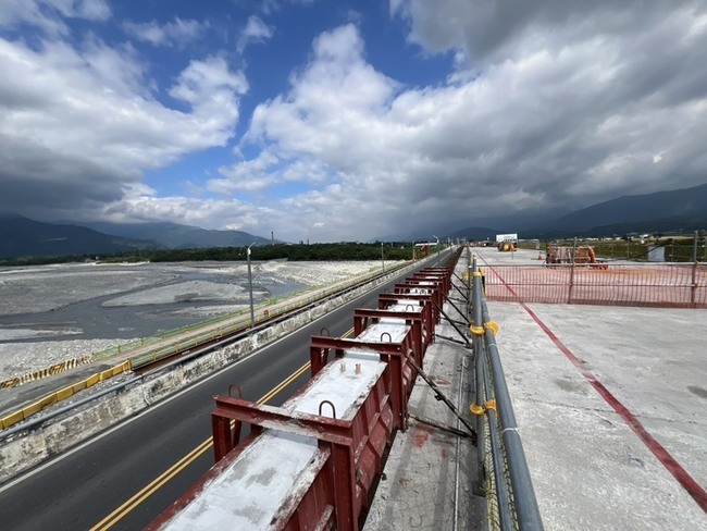 公路局南部養護工程分局關山工務段段長林進芳表示,池上大橋改建工程全長1.34公里,其中橋梁段為860公尺,新橋採雙向分離設計,單向橋面寬度由8.5公尺拓寬至13公尺,橋面更為寬敞,並從原先布設1車道、1慢車道,未來配置2車道及1慢車道,加上1.5公尺人行道。