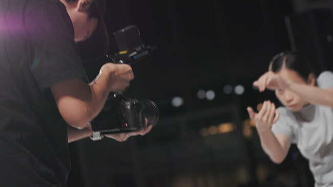 他也以作品中一段即時互動為例指出,在演出過程中,舞者在既有結構下做出即興選擇,接手攝影機並轉而拍攝正在場內下指令的導演與現場觀眾。這段未事先設定、但基於專業判斷所生成的互動,被完整保留進作品之中,成為拍攝與被拍攝角色短暫轉換的重要片段。