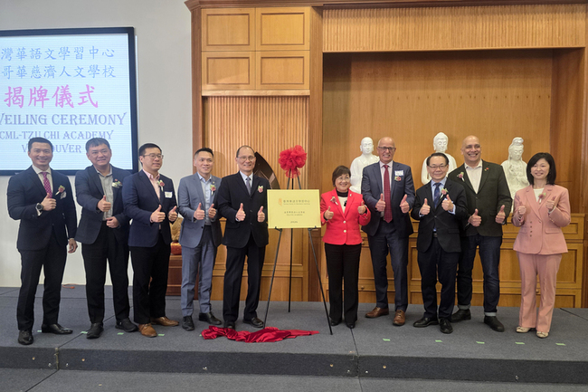 溫哥華慈濟人文學校管理的「台灣華語文學習中心」15日正式揭牌。慈濟加拿大分會執行長苗萬輝說,慈濟人文學校歷史近30年,一直教導孩子學中文;TCML招收對象是成年人,讓一些不會說華語的家長有機會和孩子一起學中文,創造親子共學空間。