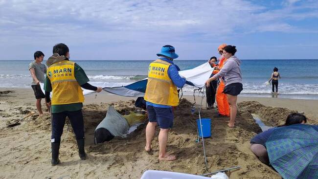 屏東縣車城鄉海口沙灘今天上午有民眾發現小虎鯨集體擱淺,11隻個體中有4隻身亡、7隻生還。海委會海洋保育署表示,海保救援網(MARN)接獲海巡署第六岸巡隊通報後,依救援機制啟動應變程序,迅速聯絡救援團隊前往現場處置。