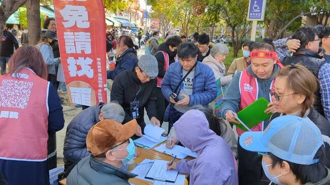 (中央社記者蘇木春台中12日電)公民團體今天在台中南屯運動中心前舉辦罷免藍委連署活動,民團批國民黨籍立委廖偉翔說他爭取活動場地人行道是「收割」;廖偉翔說,他爭取人行道改善工程,會持續推動各項建設。