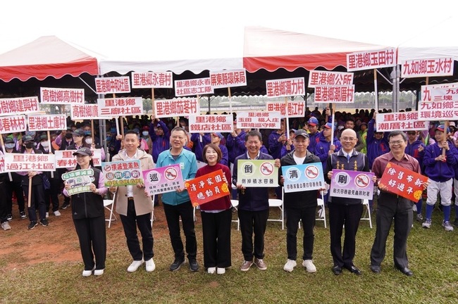 隨後周春米、九如鄉長藍聰信、里港鄉長徐國銘、高樹鄉長梁正翰、民進黨屏東縣議員陳明達等人,與志工齊呼「清淨家園總動員 除舊布新好過年」口號後,進行掃街,環保局並發送打掃用具,讓志工返回家園投入居家及公共區域等環境清理。