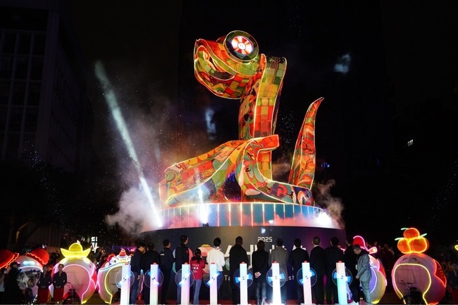 他表示,今年燈節規劃四大展區,包含主燈區、西門展區、中華路展區及北門展區,各具特色,精彩可期,且今年主燈「福蛇豆豆」高達13尺,擁有圓潤的大眼睛,並搭配每半小時1次的展演,吐舌動作增添趣味,象徵旺盛的生命力。
