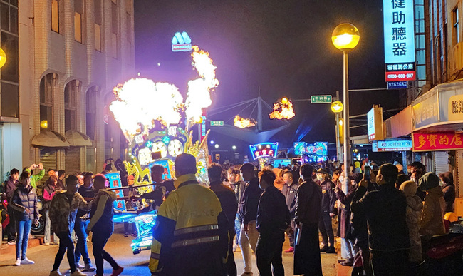 (中央社澎湖縣10日電)「2025西巡慶元宵 炫火武轎踩街」活動,今晚在澎湖馬公市區登場,鑼鼓、電音與火焰,此起彼落,非常熱鬧,雖然寒流低溫,馬公街頭仍現人潮,為元宵乞龜文化活動掀起首波高潮。