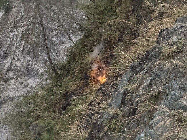 公路局中區養護工程分局谷關工務段說明,昨天傍晚5時中橫便道18.9K處邊坡起火,現場有台電電塔施工包商在場,稱落石打中電纜導致。