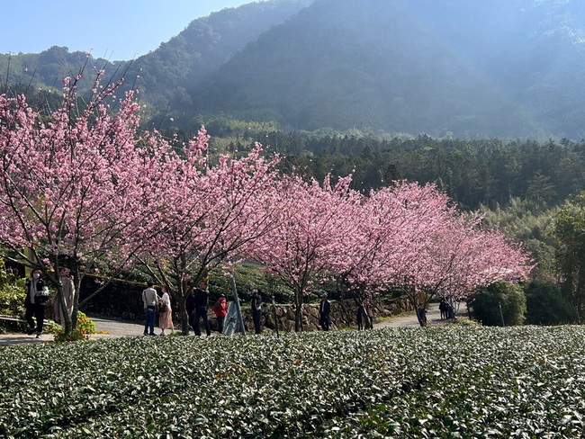 另外,位於阿里山公路(台18線)旁「中興製茶所」櫻花盛開,粉色櫻花海與翠綠茶園及遠山交相輝映,構成一幅迷人的自然畫卷。