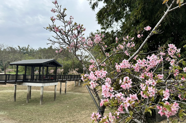 館方人員表示,2016年起在專家協助下,於淨水池區種植約500棵櫻花,包括河津櫻、富士櫻、吉野櫻與八重櫻,每年春節前後綻放,成為台南市民期待賞花勝地,今年因連續幾波低氣溫影響,花期較往年延後,目前開花率約7成,預估228連假將迎來滿開盛況。