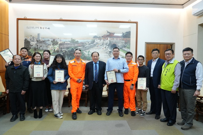 陳光復在縣府頒發感謝狀,表揚協力珊瑚復育有功的台北關渡扶輪社、海洋途徑潛水、日日潛水、樂福海洋工坊、陽光阿有專業浮潛、波賽頓海洋運動俱樂部及海巡署金馬澎分署第七岸巡隊等7個公私單位團體,肯定對珊瑚復育的努力與貢獻。