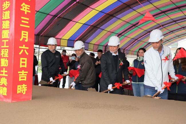水利處今天在明德水庫碼頭服務中心舉行動土典禮,客委會副主委范佐銘、苗栗縣長鍾東錦、國民黨籍立委邱鎮軍、頭屋鄉長徐鑫榮、苗栗市長余文忠及多名地方民代共同焚香祈福並執鏟動土。