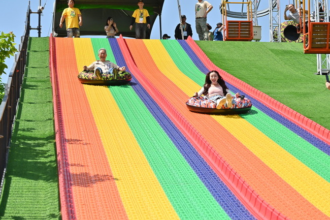 (中央社記者王朝鈺宜蘭27日電)宜蘭綠色博覽會將於29日在武荖坑風景區開幕,今天開放縣民搶先體驗,會場共有21座親子同樂體驗設施,代理縣長林茂盛到場與民眾同樂,直呼非常好玩。