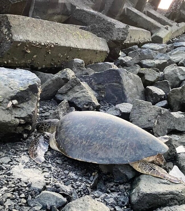澎湖「七美報報」臉書(Facebook)表示,一名陳姓遊客昨晚在其入住的「聽浪的日子」民宿海岸邊,聽見有疑似海龜呼吸吼聲,經前往察看是隻保育綠蠵龜擱淺在西海岸消波塊間,立即向民宿業者反映並向岸巡等單位通報,展開海龜救援行動。