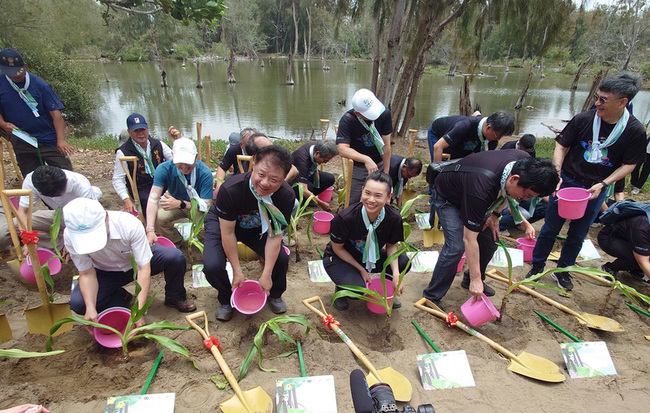林業署嘉義分署表示,中華電信於112年捐款新台幣1000萬元,參與農業部林業及自然保育署的認養造林計畫,今天與嘉義分署於嘉義縣布袋好美保安林(美漾森林)舉辦植樹活動,中華電信永續發展傳播大使戴資穎到場助陣,並與企業志工、社區居民及好美國小師生共同植樹。