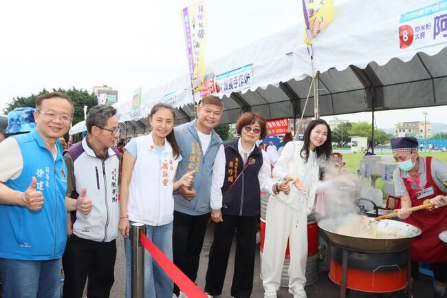 (中央社記者管瑞平苗栗縣4日電)苗栗縣頭份「四月八」澎湃慶城藝系列活動,今天舉辦炒米粉大賽,20組參賽隊伍火力全開拚廚藝,吸引許多民眾參觀品嚐,展現客庄好客精神,熱鬧滾滾。