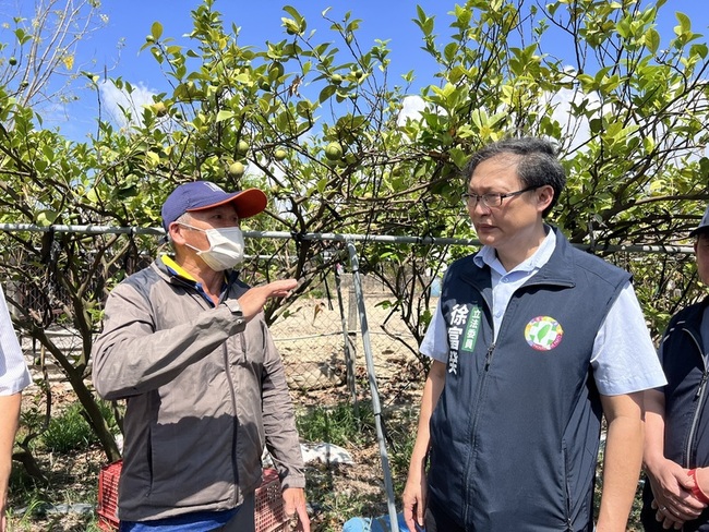 徐富癸表示,屏東縣是檸檬重要產地,種植面積約1600公頃。近期接獲農民反映竹田鄉檸檬受到氣候因素影響,導致嚴重農損,今天邀集農糧署、農改場、屏東縣政府及農會等單位進行現勘,並研擬協助措施。