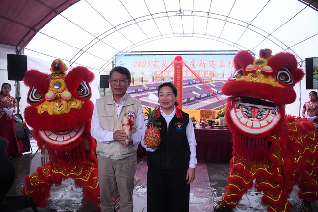 中華民國紅十字會長潘維大今天率隊到花蓮參加震災組合屋動工儀式,代表捐贈新台幣2800萬元組合屋材料費。花蓮縣長徐榛蔚現場宣布,紅十字會將加碼450萬元基本家具費用。