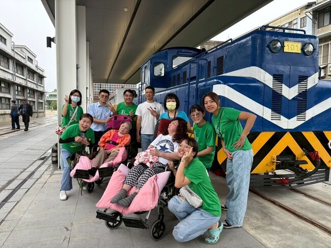 為提前慶祝母親節,創世苗栗院今天帶領多名院民,前往甫開幕營運的苗栗火車頭園區郊遊,活動前特地幫她們敷臉、打扮妝容,讓植物人美美的出門,並邀請苗栗縣薩克斯風團隊現場演出,也送上康乃馨花束與精緻蛋糕,儀式感十足。