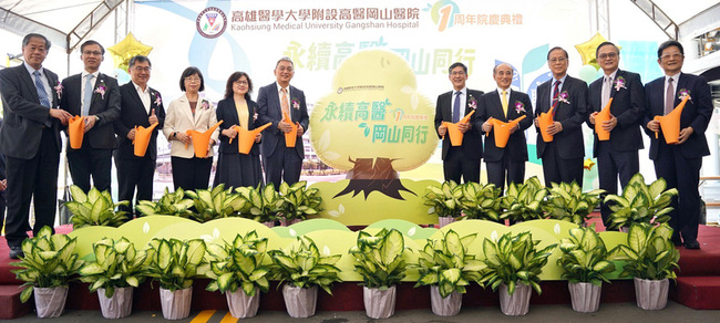 高醫岡山醫院今天舉辦週年院慶典禮,活動上百人見證「生命之樹」啟動。黃炫廸致詞時表示,回顧10年來從無到有、披荊斬棘建立起高醫岡山醫院的歷程,感謝高雄醫學大學董事會及高雄醫學大學的支持。