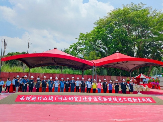 (中央社記者蕭博陽南投縣8日電)中央全額投資興建「竹山好室」社會住宅今天動土,國家住都中心表示,基地對外交通便利、生活機能佳,2棟提供172戶,規劃托嬰中心、鄰里共享休憩空間,期許成為竹山新地標。