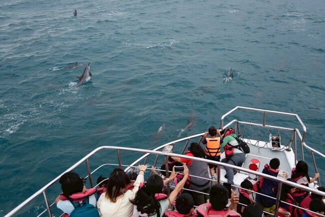 多羅滿賞鯨業者指出,今天海況穩定,師生於海上觀測到100多隻的飛旋海豚,孩子們首次目睹野生鯨豚躍出水面的畫面,透過實際體驗,期盼讓孩子與海洋產生連結與責任感,未來可能成為守護海洋的重要力量。