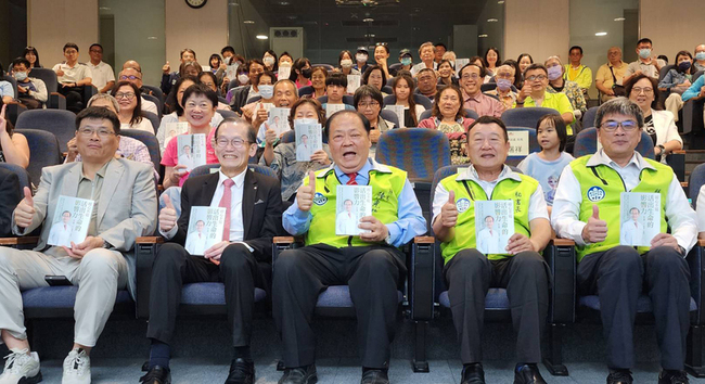 杜元坤「初心不退:活出生命的影響力」新書分享下午在澎湖生活博物館舉行,澎湖縣長陳光復、副縣長林皆興、秘書長楊書舜等人與滿場民眾到場聆聽;一位躺在家中10餘年的病患,在「杜式刀法」手術下復原,也專程到場獻花致謝。
