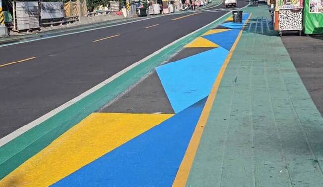 (中央社記者黃郁菁屏東縣20日電)墾丁大街人行空間昨起漆新標線,3色幾何圖形,引發網友質疑設計複雜。警方今天說明,新增「路邊停車帶標線」,該區域白天可臨停,下午5時至晚間11時禁止停車。