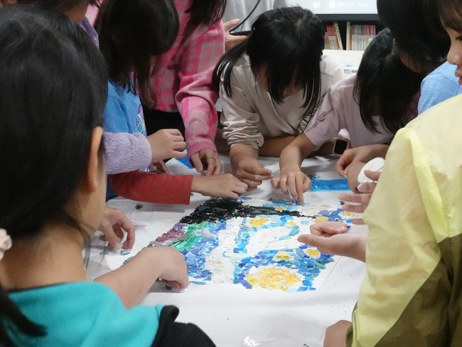 中山大學說明,海廢升級再造計畫帶領學童與企業員工製作海廢再生手作吊飾,期間號召參與者至旗津淨灘,再讓國小學童運用蒐集的塑膠碎片拼貼臨摹世界名畫,結合知識與實作,強調在地連結與美感教育,並深化海洋環保意識。