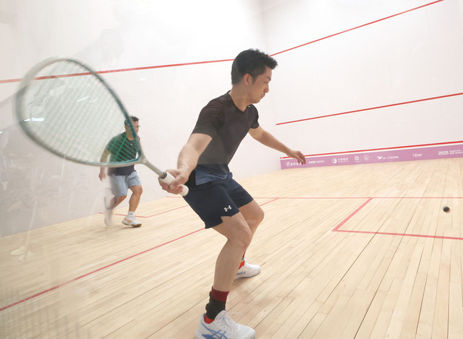 (中央社記者陳昱婷台北21日電)台北市長蔣萬安今天站上2025雙北世壯運壁球項目賽場,雖在賽前打預防針稱只練了2次、被KO不用太驚訝,仍連續2場以直落三擊敗對手,若明天取得第3勝,就能晉級準決賽。