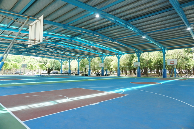 (中央社記者姜宜菁雲林縣23日電)虎尾科技大學優化宿舍區籃球場,花3500萬元整建為光電風雨球場,今天啟用;球場屋頂鋪設太陽能板,預估年均發電量逾67萬度,不僅提升宿舍生活機能,也推動運動風氣。