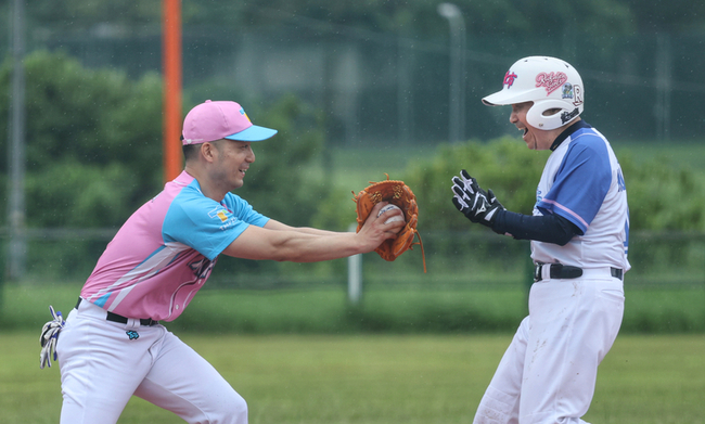 (中央社記者陳昱婷台北24日電)2025雙北世壯運慢速壘球項目今天上演雙北大戰,台北市長蔣萬安、新北市長侯友宜各自率首長對決,以9比3收場。蔣萬安賽後讚侯友宜腳程快,侯友宜也說蔣萬安打得不錯。