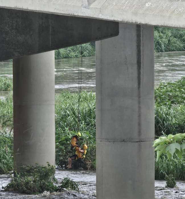 彰化縣消防局今天下午1時14分接獲梁姓釣客自行報案,指稱其受困於台74線高架橋下沙洲,因溪水暴漲無法回到岸邊,請求救援,因此消防局出動各式消防車3輛、救護車1輛、救生艇1艘及消防人員7人。