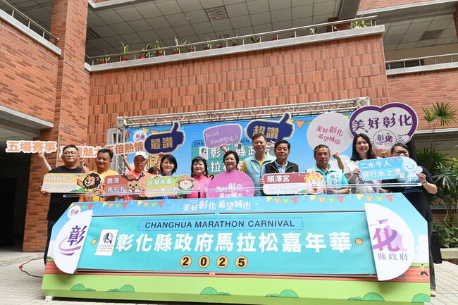 彰化縣政府今天舉辦「2025彰化縣馬拉松嘉年華」啟動記者會,縣長王惠美表示,馬拉松嘉年華邁入第6屆,從10月26日至12月14日規劃5場具地方特色路跑活動,遍及員林市、二水鄉、田中鎮、鹿港鎮及埔鹽鄉,融合運動、文化、宗教、觀光與公益。