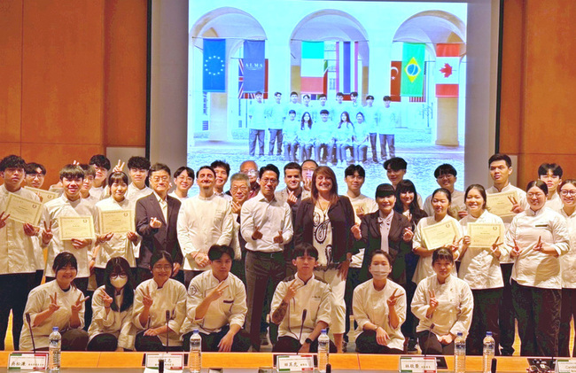 弘光科技大學今天發布新聞稿,餐旅管理系日前舉辦第6屆義大利ALMA廚藝學院實習結業授證儀式,14名拿到結業證書的畢業生,每人獲得教育部深耕計畫及學校經費補助近新台幣60萬元,完成研習及米其林級餐廳實習共5個月學習里程。
