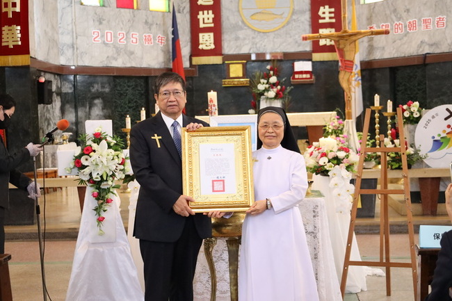 天主教新竹教區主教李克勉致詞表示,趙修女在新竹縣後山奉獻一甲子,無私大愛照顧幼兒、青年,對婦女縫紉技能的培育不遺餘力,可說是天主從義大利派來的天使,願她在天上也能為大家代禱。