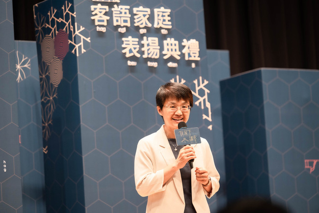 (中央社記者魯鋼駿苗栗縣7日電)114年度客語家庭表揚典禮北區場次今天在苗栗縣銅鑼鄉台灣客家文化館舉行,客委會主委古秀妃指出,客語是重要資產,鼓勵民眾多與小孩講客語,共同推動客語永續傳承。