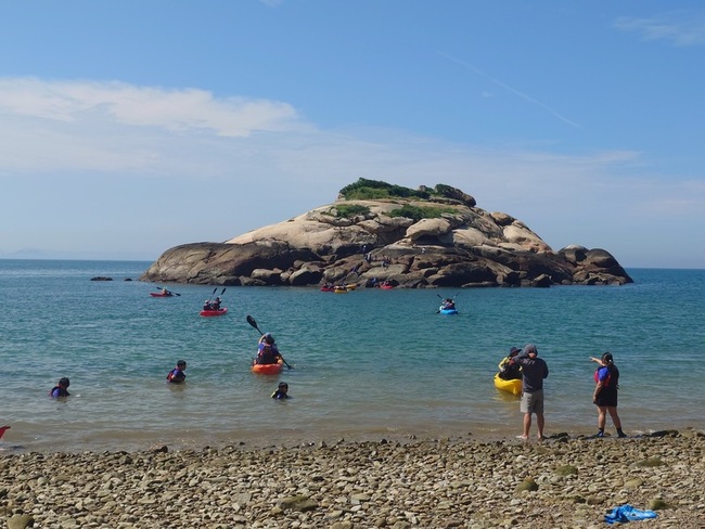 連江縣立中山國中9年級、塘岐國小6年級畢業生各10人,今天下午在師長見證下,從中山國中出發,先騎自行車至坂里水庫的長陡坡,折返回到學校後,再沿著芹壁村旁道跑至上村,最後再到芹壁海灘,划獨木舟抵達龜島。