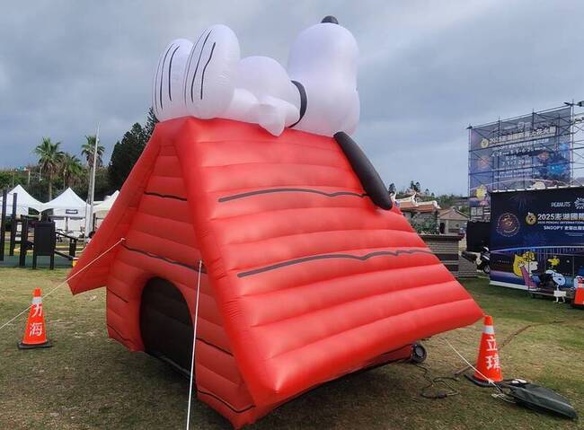 (中央社澎湖縣12日電)澎湖國際海上花火節新增的「經典狗屋造型」與「史努比」等大型角色氣球裝置藝術,今天配合花火施放對外開放,可填補19日過後沒有無人機展演的活動缺口。