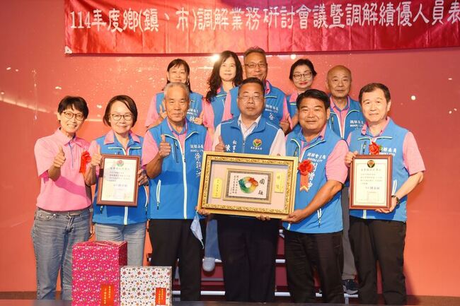 (中央社記者管瑞平苗栗縣18日電)苗栗縣各鄉鎮市113年受理調解案2121件,調解成立比率將近7成,縣府今天表揚績優調解委員會及委員,感謝扮演地方「公道伯」化解紛爭,有助疏減訟源避免耗費司法資源。