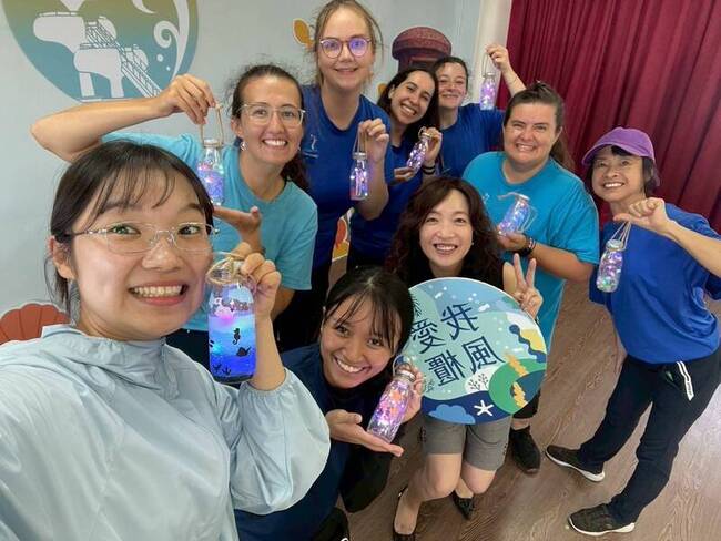 林妍伶表示,望僕號船上國際志工今天與風櫃國小師生,以海洋廢棄物與生活中回收材料,一起動手製作專屬小夜燈,點亮溫暖的光,也陪伴志工們航向下一個國家旅程;同時在於水試所澎湖漁業生物研究中心協助下一起體驗種海草,以行動護地球,為守護海洋盡一份心力。