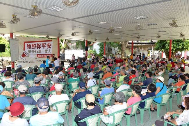 (中央社記者管瑞平苗栗縣25日電)新北三峽區5月發生重大車禍事故,引發高齡駕駛換照討論,交通部提出下修高齡駕駛換照年齡至70歲等改革措施,今天在苗栗市玉清宮前開講,吸引約百名長者到場聆聽。
