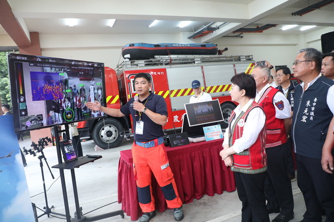 (中央社記者趙麗妍台中27日電)台中市長盧秀燕今天啟動和平專案,首日走訪和平區小學及警消單位,在視察警消分隊時突出現2聲槍響,盧秀燕笑問是否是迎賓禮炮。經查是展示用瓦斯空氣槍不慎提前試放。