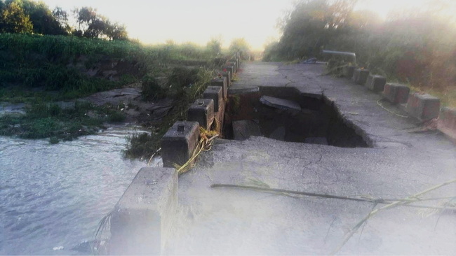 (中央社記者蔡智明嘉義縣5日電)嘉義縣政府今天說,太保市北新里牛稠溪浮水橋由於昨天夜間雨勢太大而溪水暴漲,淹過浮水橋,橋面破1個大洞,太保市公所上午已派員到場拉封鎖線,目前兩端封閉禁止通行。