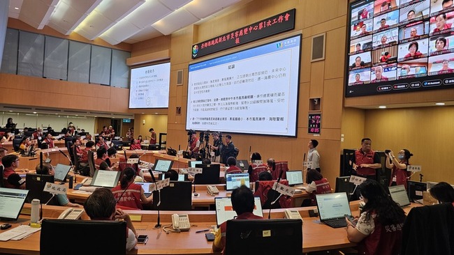 因應丹娜絲從南接近北台,新北已納入陸上警報範圍,新北災害應變中心一級開設並於上午10時召開首次工作會議,侯友宜聽取氣象團隊分析評估風雨影響及各單位防颱工作整備情形。