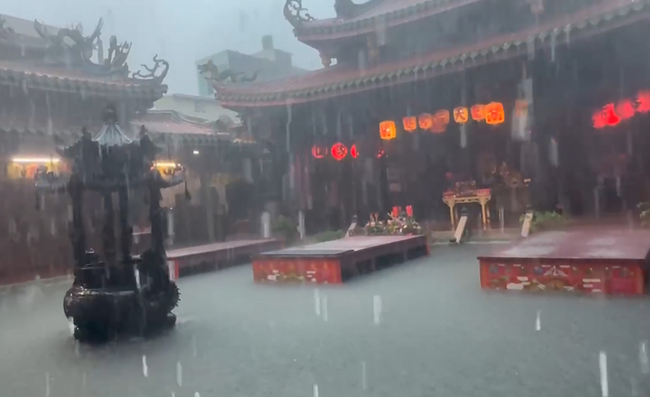 廟方表示,強降雨排水宣洩不及造成淹水,廟前也都淹水,大家趕緊移走機車,附近很多路段都淹水,民眾行車要避開積淹水路段。