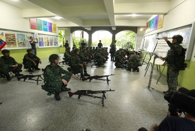除了常備部隊,今年更首次以旅級規模動員召集後備部隊,第五作戰區步兵302旅結合「同心操演」上午在苗栗縣竹南鎮竹興國小實施召員專業專長複訓,以實裝、實地方式進行演練,由教官逐一引導召員分別操作65K2步槍、M249班用機槍及T74排用機槍等武器裝備。