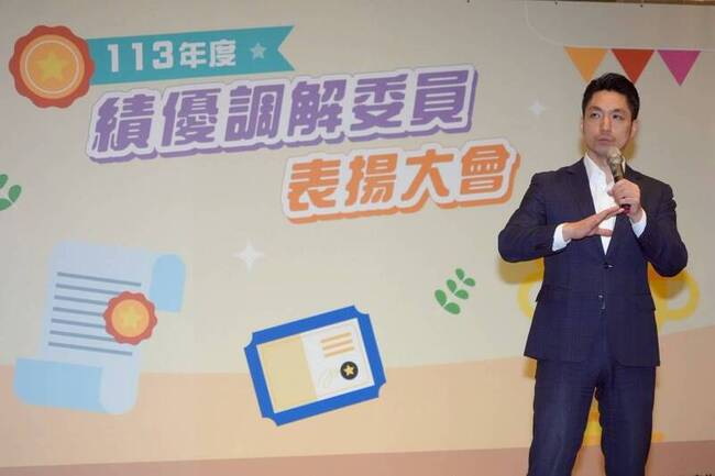蔣萬安今天出席113年度績優調解委員表揚大會致詞表示,台北市幾乎每天都會有許多糾紛及爭議上演,不管是租屋、土地買賣還是車禍,都必須靠調解委員秉持專業、經驗及耐心協助,他對於每位調解委員的調和鼎鼐功力表達萬分欽佩。