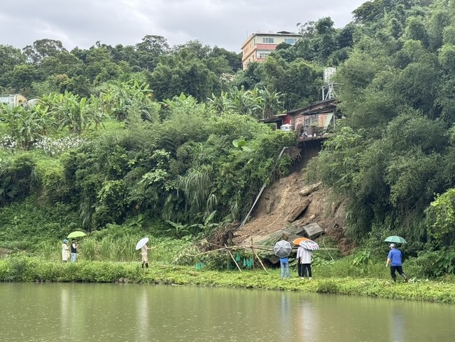 北埔鄉公所今天透過文字表示,獲民眾通報,在大湖村5鄰、12鄰處,有民宅旁駁坎和住家附近邊坡崩塌,鄉長莊明增、鄉代會主席徐鏡明等人,也前往視察。