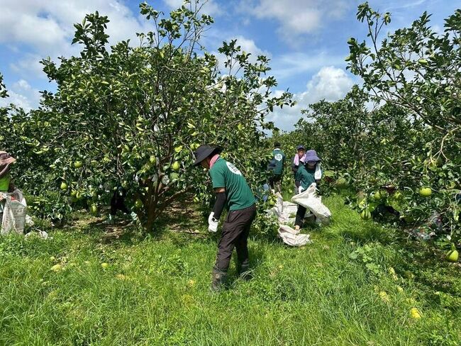 (中央社記者蔡孟妤高雄16日電)颱風丹娜絲造成台南麻豆地區文旦果園損失慘重,滿園落果。高雄市農業局號召30多名高雄青農組成「農業突擊隊」,北上麻豆協助清園,讓文旦農哽咽淚謝:「不再孤單」。