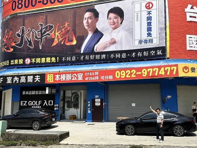 台中市政府都發局透過文字稿表示,違建與廣告看板各有適用法源,不能混為一談。今天已派員現場勘查,後續依選罷法規定,廣告物的懸掛或豎立不得妨礙公共安全或交通秩序,並應於投票日後7日內自行清除;違反者,依有關法令規定處理。