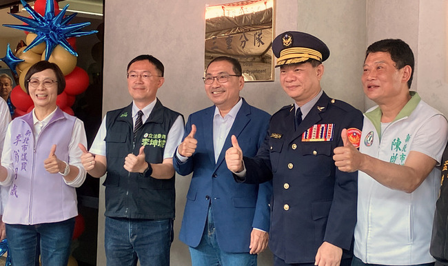 新北市三重警察分局交通分隊辦公廳舍及公有拖吊場,今天由市長侯友宜、市警局長廖訓誠、三重警分局長黃國政、與民意代表主持剪綵、揭牌落成啟用。