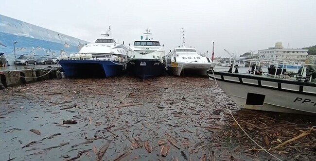 從昨天下午開始,海上的漂流木陸續漂進富岡港,漁船和客輪不敢出海,擔心葉片打到漂流木,或是船身撞到粗大漂流木,客輪和海巡船艦也被漂流木包圍,航行受限。